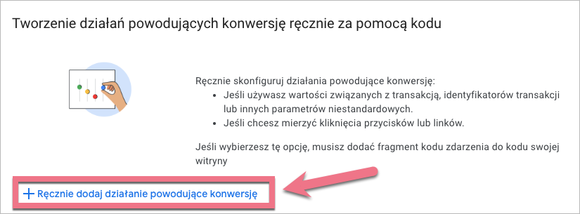6. Zjedź w dół strony i kliknij Ręcznie dodaj działanie powodujące konwersję.