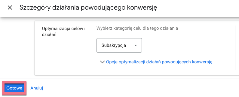 Wróć do sekcji konfiguracji Google Ads i kliknij Gotowe. Teraz możesz śledzić konwersje.