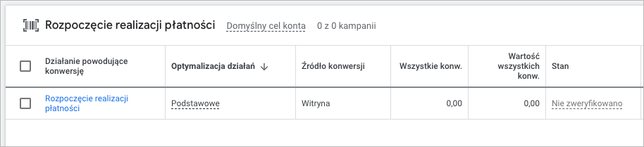 - Jeśli status śledzenia Nie zweryfikowano jest wyświetlany przez mniej niż 24 godziny, nic nie musisz robić – Google potrzebuje kilku godzin na weryfikację tagu po pierwszej konwersji.