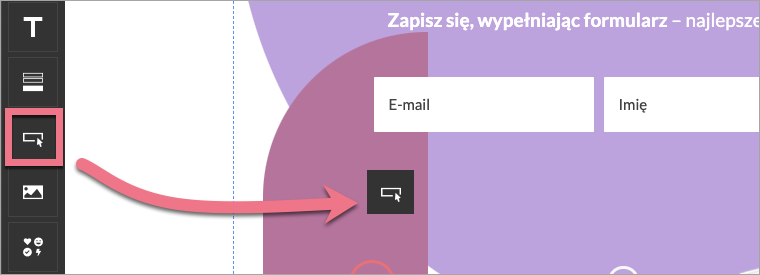 6. Po lewej stronie edytora odszukaj widget Przycisk, przeciągnij go i upuść w obszar aktywny Twojego landing page’a.