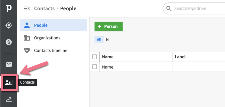 To see your leads in the Pipedrive platform, go to the Contacts tab.
