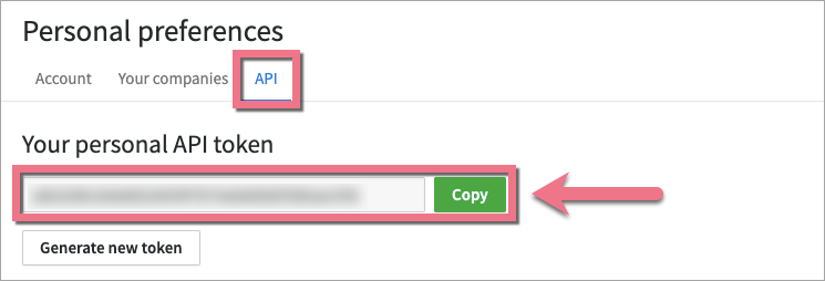 3. In the API tab, find your API token and copy it.