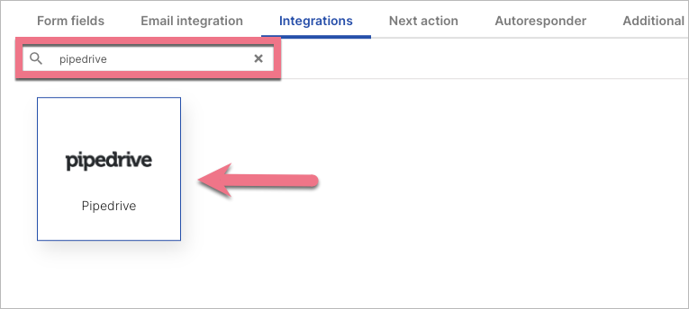 3. In the Integrations tab, choose Pipedrive. You can use the search bar to look for the integration. Type the name and press enter.