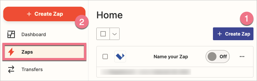 1. Go to the Zaps tab and click Create Zap (1 or 2).